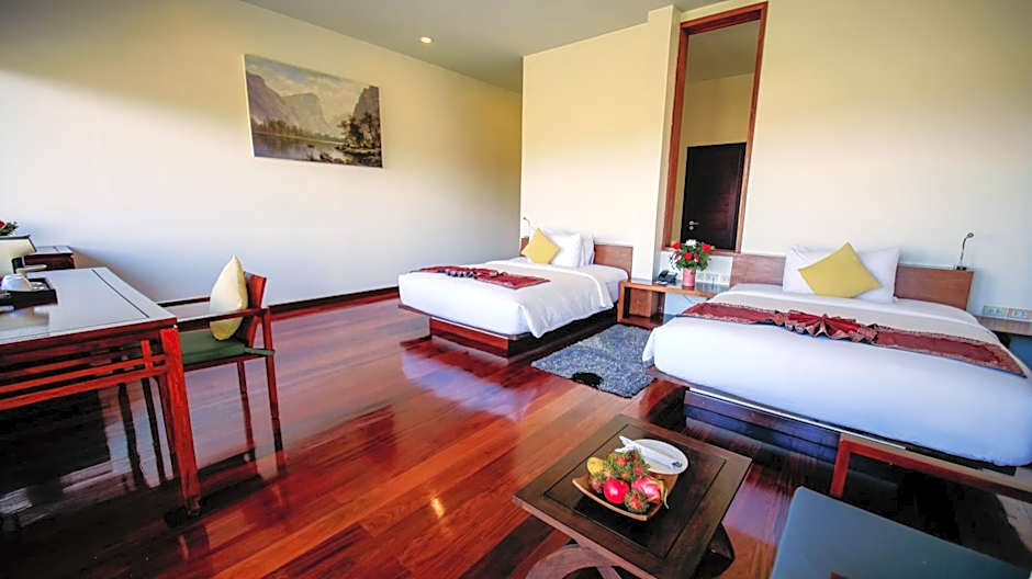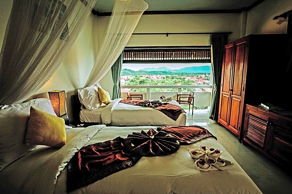 Meet the morning in a Superior King / Twin Room with a natural canvas painted with mountain peaks rising above a rim of clouds. View Mount Phousi Temple glistening across the UNESCO World Heritage city on the Mekong. You can absorb the panorama through the window from the moment you wake up in your plush bed. Sit in a quiet, peaceful postcard, while having morning coffee or tea at a table and chair on your private balcony, or when leaning back from the desk to refresh your mind. Each Superior Room presents an elegant interior decorated with locally sourced furniture and accessories. Selected rooms are easily accessible for the elderly and disabled, while all feature sizable bathrooms with deep tubs and rain showers. Groups receive personal service with a view in a Superior King / Twin Room.