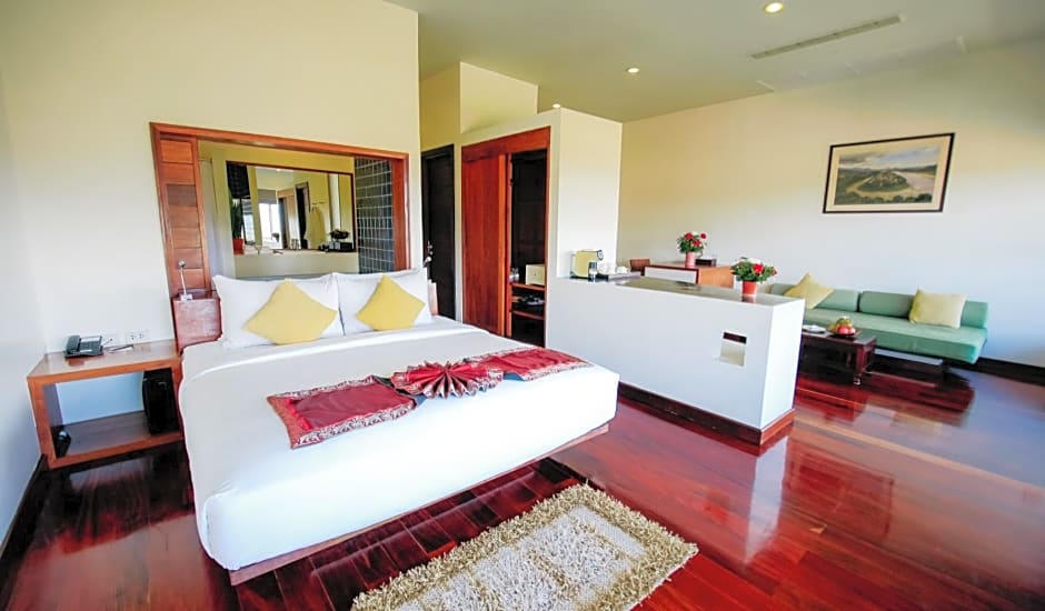 Relax on your quiet, private balcony and enjoy an unobstructed view of the UNESCO World Heritage city in a garden setting. Deluxe King /Twin Rooms present a panorama from Mount Phousi Temple stretching to the northwestern mountains. Set on a terrace stepping down from the Infinity Pool and restaurants, these spacious 68-sqm rooms also present picturesque snapshots from your bed, dining and desk area, and even the deep tub. Each room presents an interior design that includes locally sourced furniture and accessories. Spacious bathrooms include a rain shower, a pair of vanities, private toilet, and sizable wardrobe. Perfect for groups and couples staying a few days, and who want to feel like the King or Queen of “The Hill”.
